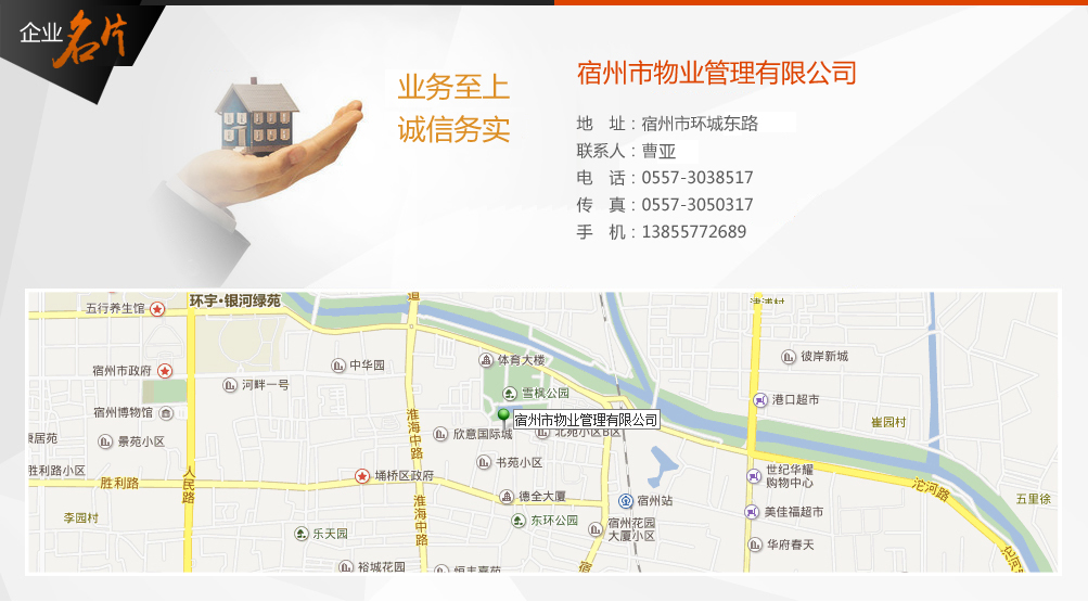 宿州市物業管理有限公司成立于1996年11月,原隸屬宿州市房地產管理局,是宿州市頗具規模的物業管理企業。注冊資金318萬元,持國家物業管理企業二級資質證書。是“獨立核算,自主經營,自負盈虧,自我發展”的具有獨立法人資格的專業化的物業管理服務企業。